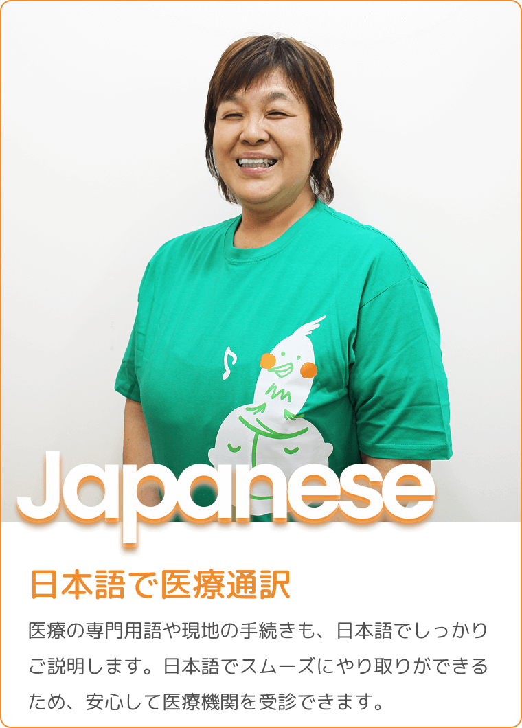 ・医療通訳: 専門的な知識を持つスタッフが、医師とのコミュニケーションを日本語でサポートします。